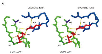 | Non-local hydrogen bond network connecting the distal loop (Ser 47 and