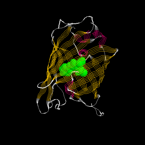 2 highlight the chromophore by spacefill and green.